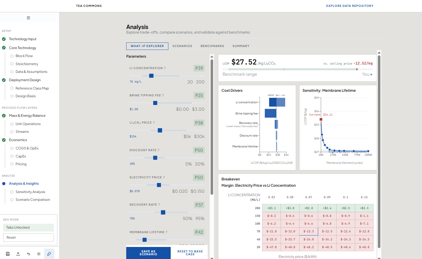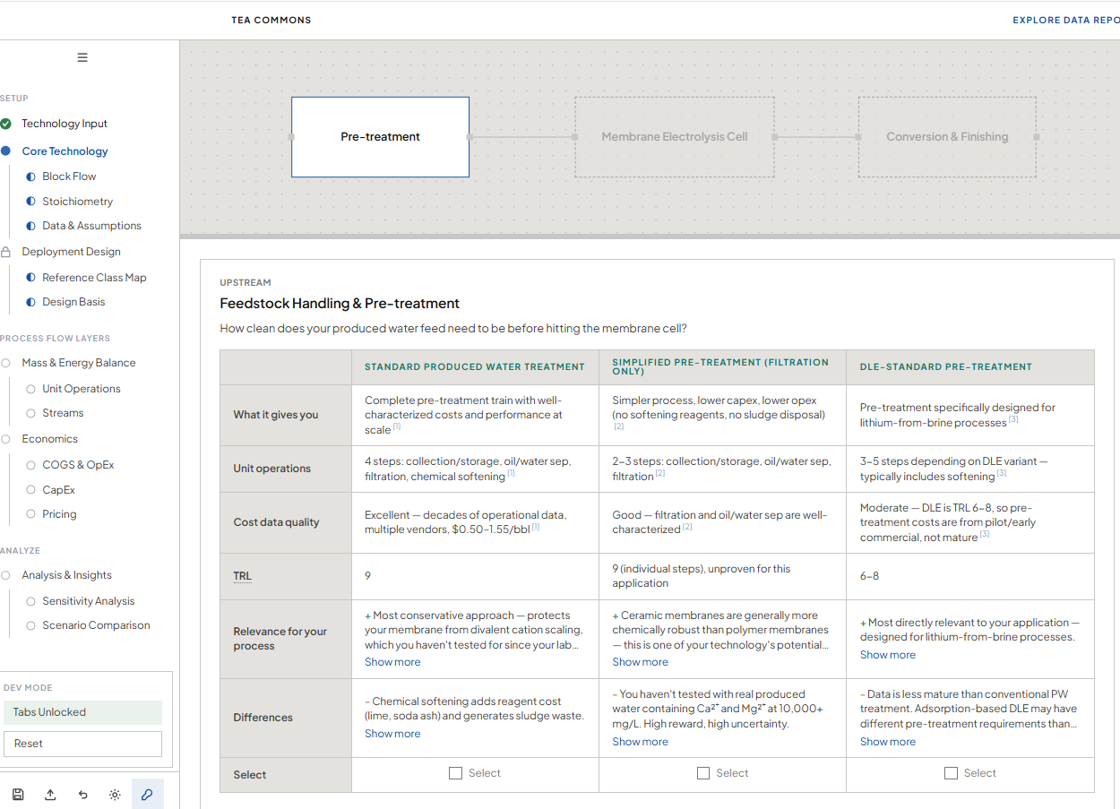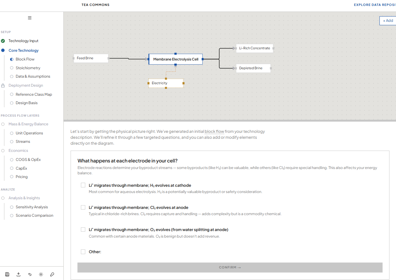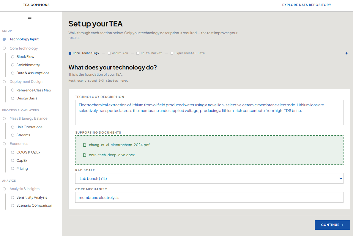 TEA has a reputation problem. It's seen as a complex, high-precision academic exercise requiring specialized software, months of effort, and niche expertise. When a scientist opens a standard TEA template and sees fifteen tabs of hardcoded assumptions and unfamiliar acronyms, many close it and go back to the lab. The people who need it most face the steepest cold-start problem, and the analysis is inherently idiosyncratic — every technology requires its own tailored approach, which makes generic templates feel both overwhelming and insufficient.